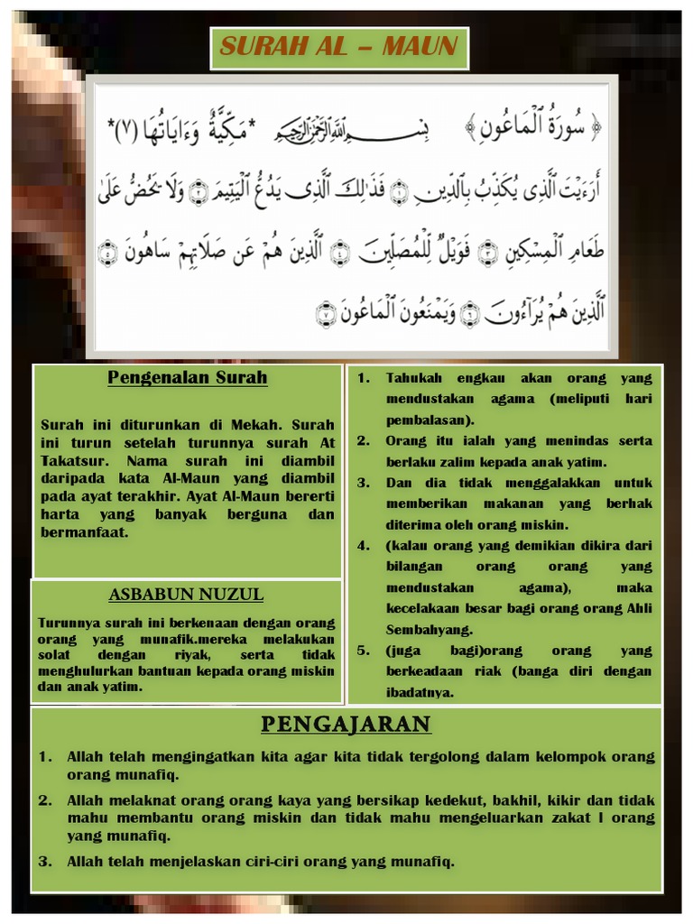 بسم الله الرحمن الرحيم. Ma Surahmaksud Surah Al Maun is just about the image we ascertained on the internet from reliable thoughts. Ia bermaksud barang-barang yang berguna.