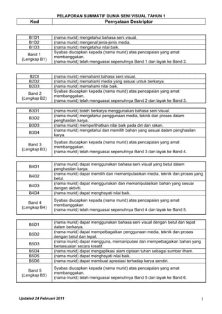 Templat Pelaporan Pbd Tahun 3 Pendidikan Kesenian